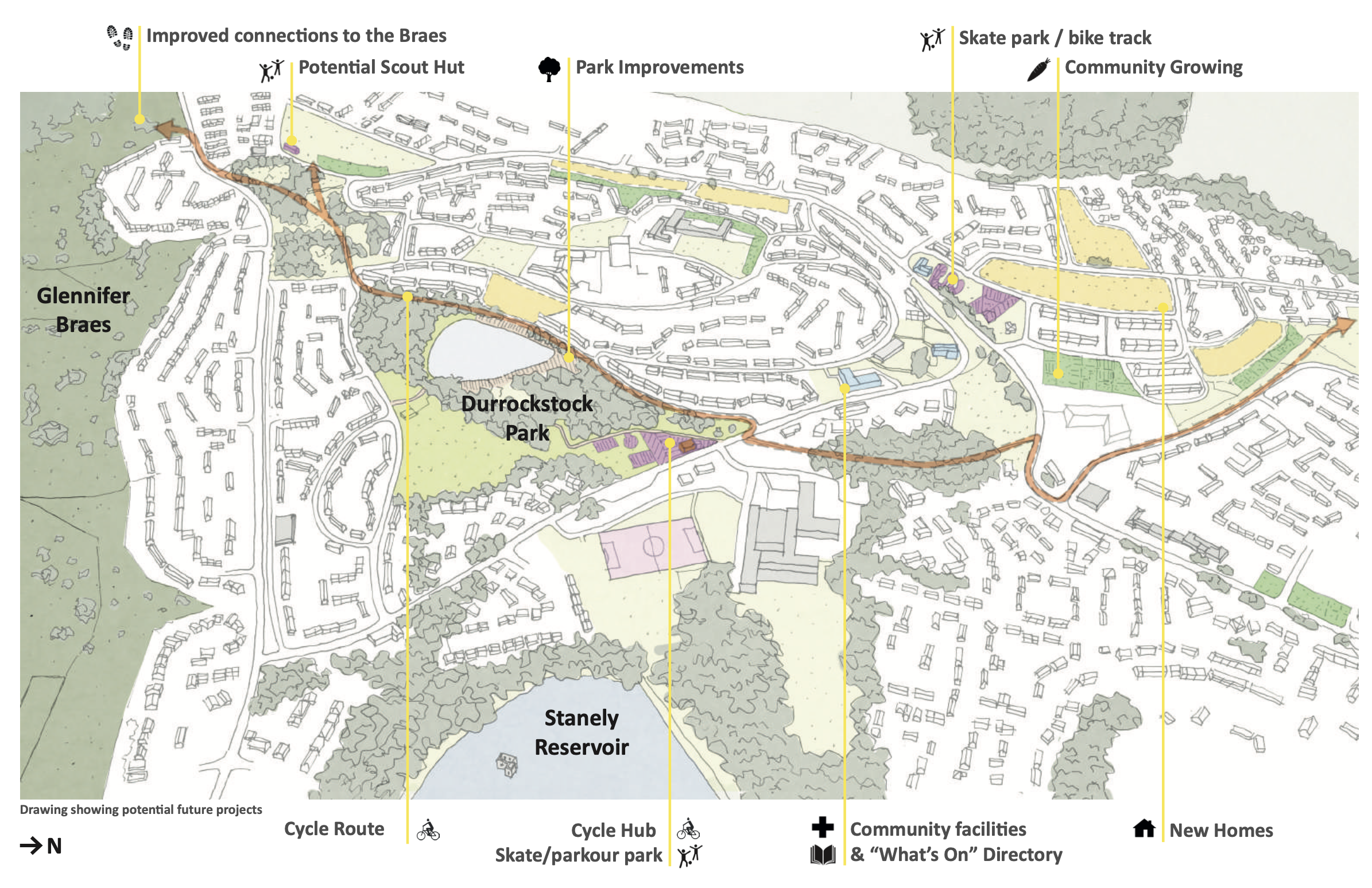 This Local Place Plan was produced by the local community with support from the local authority, to complement and support public sector investment in housing and infrastructure. The Plan includes detailed project proposals worked up by designers with the local community.